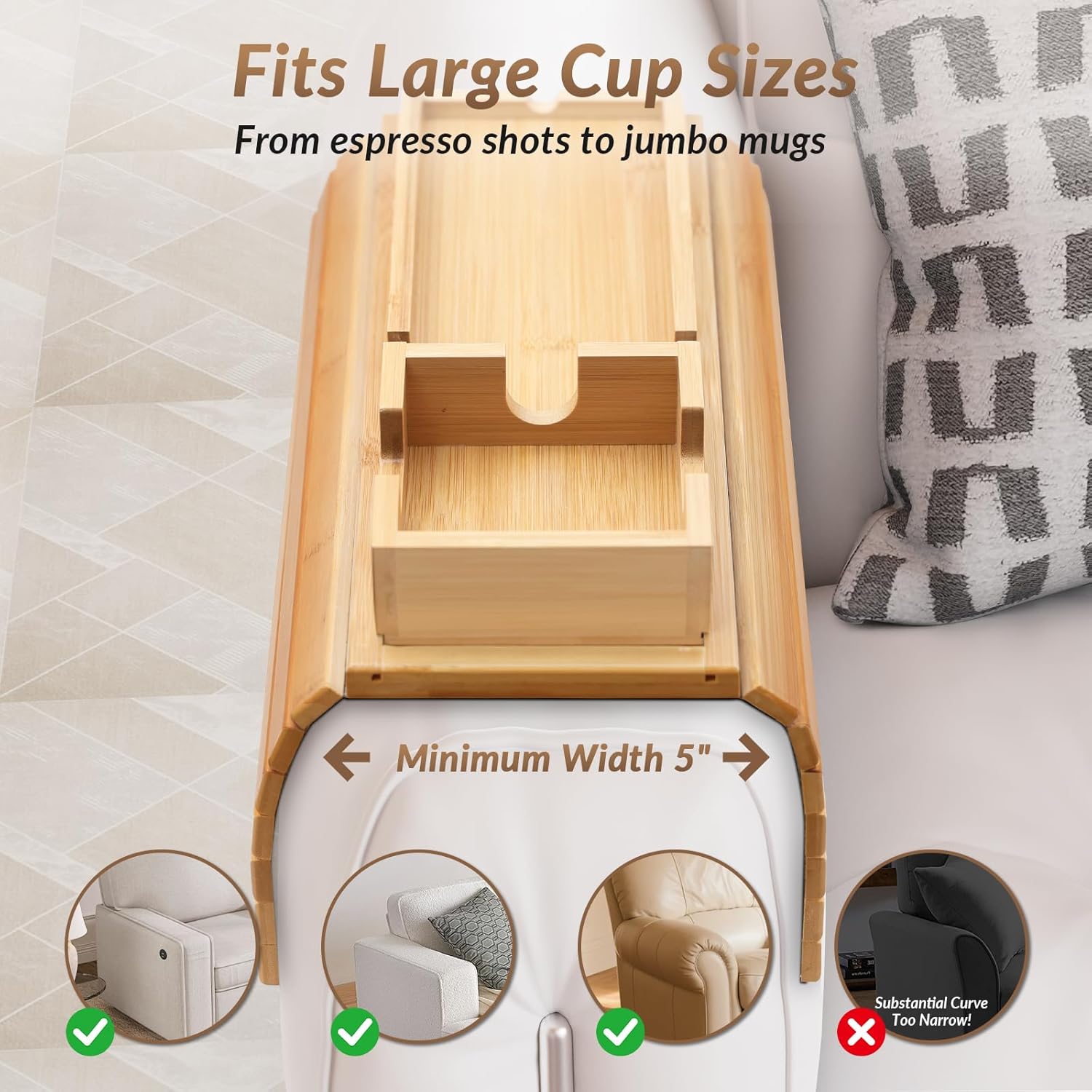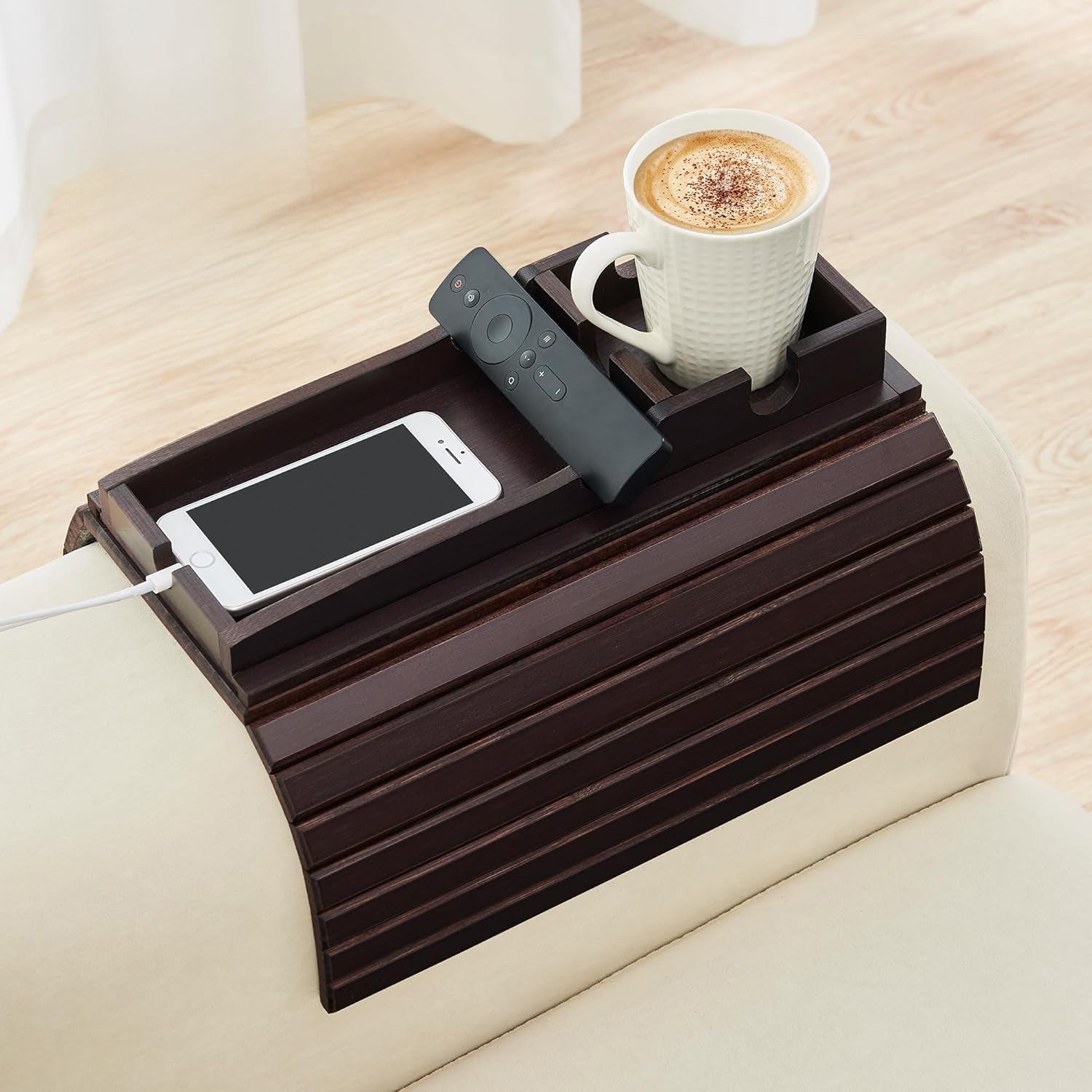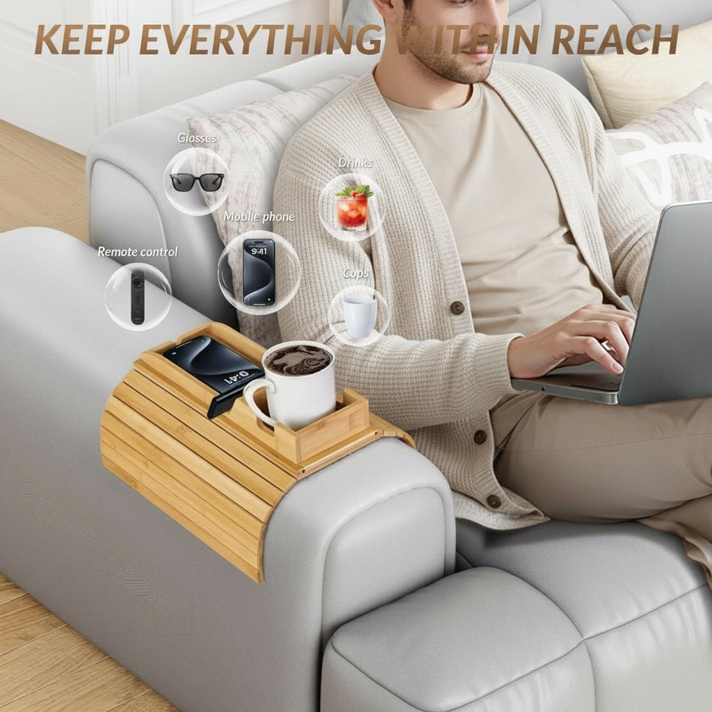 Movie nights feel better when everything you need sits right by your side instead of across the room. This foldable bamboo arm tray hugs your sofa arm, holding drinks, remotes and snacks on a sturdy, non-slip surface while freeing up precious floor space in your living room.
